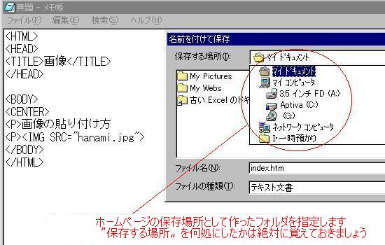 そして "index.htm (又は index.html) で保存します
